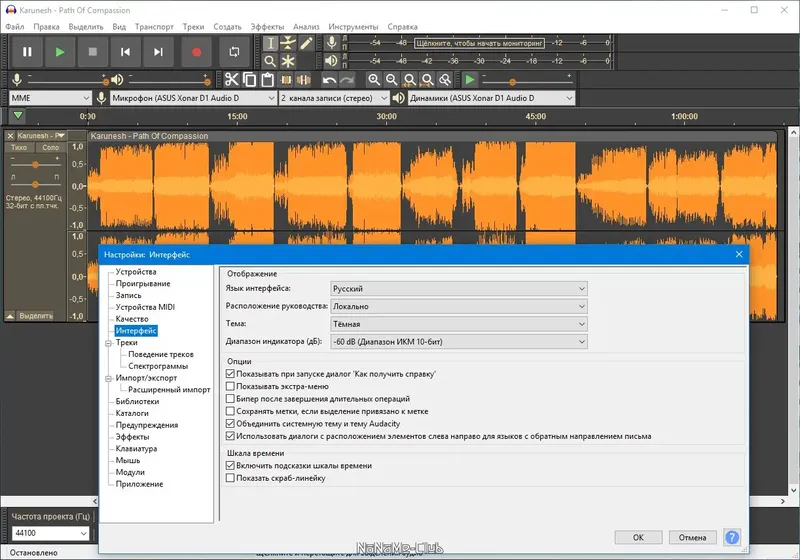 - Поддержка импорта и экспорта популярных форматов, таких как MP3, WAV и Ogg Vorbis.