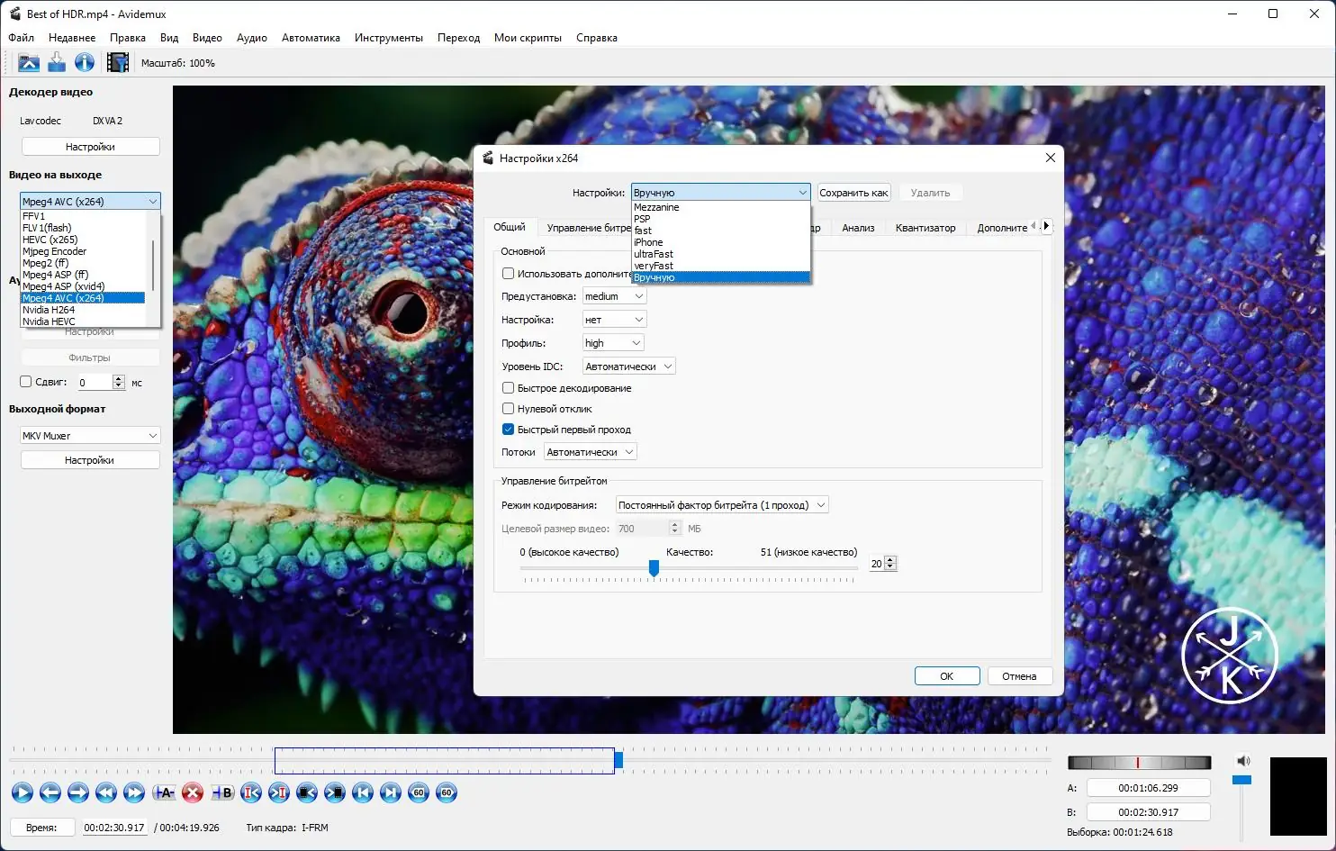 Программа Avidemux представляет собой легкий и функциональный редактор для работы с видеофайлами. Она позволяет выполнять такие операции, как вырезание ненужных частей, объединение видеоматериалов, изменение размера кадра и добавление различных фильтров для улучшения изображения и звука. Благодаря поддержке всех основных видеоформатов, включая AVI, MP4, MPEG, MKV и другие, работа с файлами становится максимально удобной. Простота интерфейса и богатый набор инструментов делают Avidemux популярным выбором среди любителей и начинающих видеоредакторов.