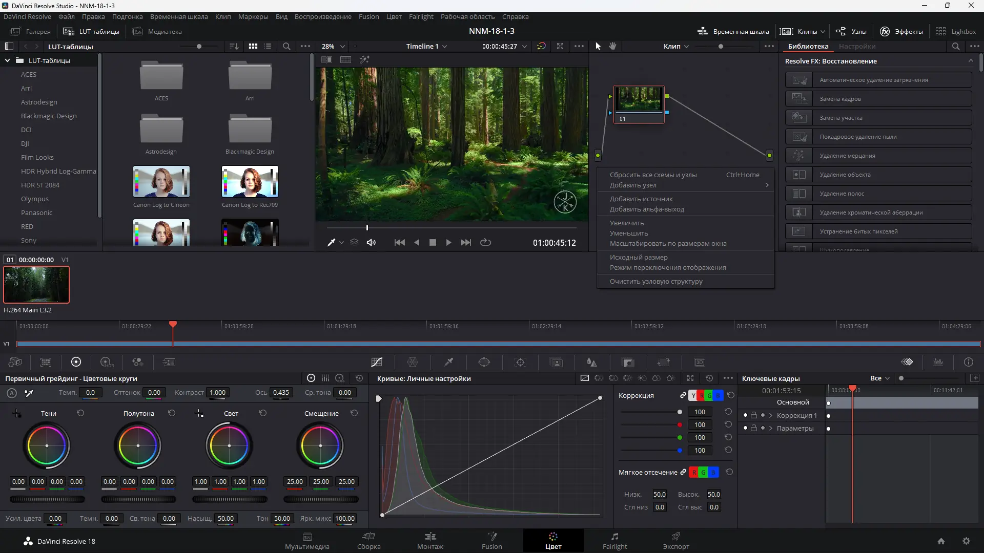 - Полный набор инструментов для монтажа, цветокоррекции и VFX.