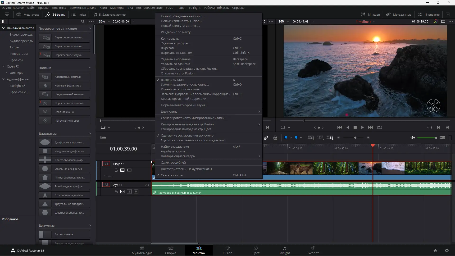 - Профессиональный инструментарий для монтажа, цветокоррекции и VFX