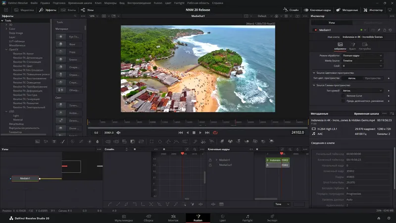 - Богатый набор плагинов ResolveFX и интеграция с нейросетями