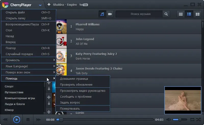 CherryPlayer — это бесплатный мультимедийный проигрыватель, который позволяет воспроизводить музыку и видео из различных источников, таких как VK, YouTube, Last.fm, BBC и Billboard. Он поддерживает большинство популярных мультимедийных форматов, позволяет создавать плейлисты и включает удобный загрузчик для скачивания видео с YouTube. Этот плеер идеально подойдет для тех, кто ищет универсальное решение для прослушивания и просмотра мультимедиа на компьютере.