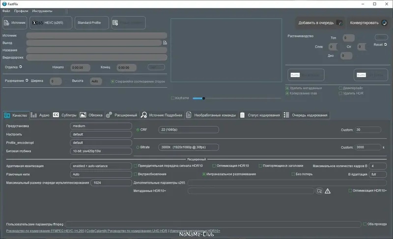 FastFlix обеспечивает высокое качество кодирования и гибкость настроек, что делает его универсальным инструментом для обработки видео.