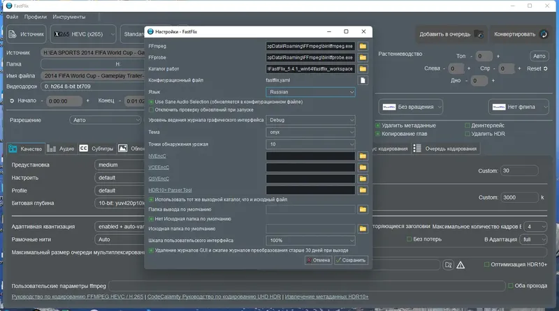 FastFlix обеспечивает гибкое управление процессом кодирования и расширенные возможности для профессиональной обработки видео.