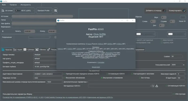 FastFlix представляет собой современное программное обеспечение для кодирования видео с графическим интерфейсом, которое значительно упрощает работу с настройками и процессами конвертации. Основной особенностью является возможность сохранять метаданные HDR10 для популярных кодировщиков, таких как x265, NVEncC HEVC и VCEEncC HEVC, а в будущем — для AV1. Это обеспечивает высокое качество изображения и совместимость с современными стандартами. Программа использует FFmpeg, что позволяет работать с широким спектром кодеков и настроек, предоставляя пользователю гибкость и контроль над процессом.