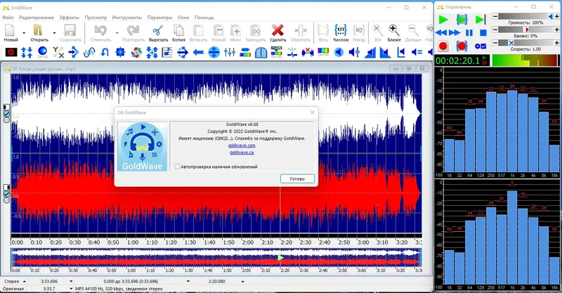 GoldWave — это профессиональный аудиоредактор, который отлично подходит для обработки звуковых файлов различной сложности. Он обладает богатым функционалом, включая редактирование, запись, микширование и анализ аудио, что делает его незаменимым инструментом для музыкантов, подкастеров и звукорежиссёров. Программа поддерживает работу с большими файлами и обеспечивает высокое качество обработки до 24 бит и 192 кГц. Благодаря широкому набору эффектов, таких как эхо, Fade, эквалайзер и фильтры восстановления, GoldWave позволяет создавать уникальные звуковые композиции и восстанавливать старые записи.