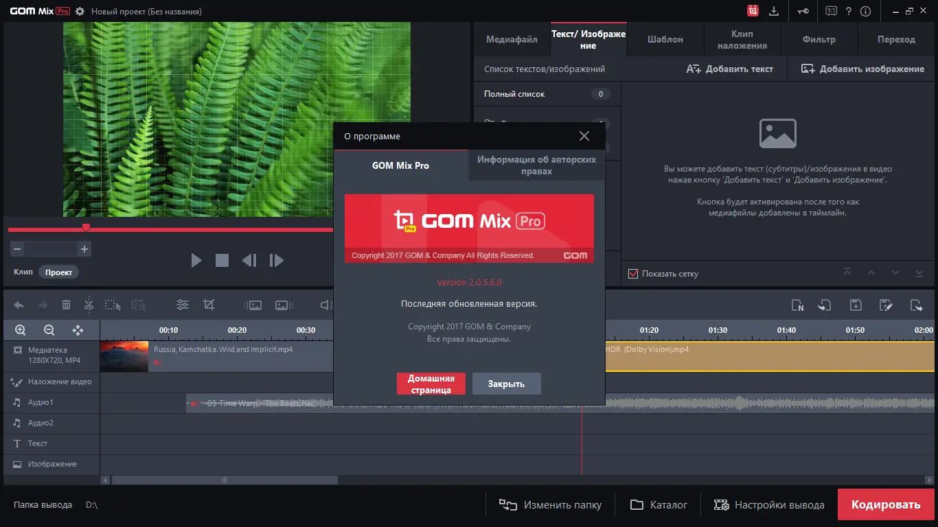 GOM Mix Pro — это универсальный видеоредактор, который подойдет как начинающим, так и профессионалам. Он предоставляет широкий набор инструментов для создания, редактирования и обработки видеофайлов, поддерживая различные форматы мультимедиа. Благодаря удобному интерфейсу и богатому функционалу программа позволяет легко реализовать самые разные идеи, от простых монтажных задач до сложных эффектных проектов.