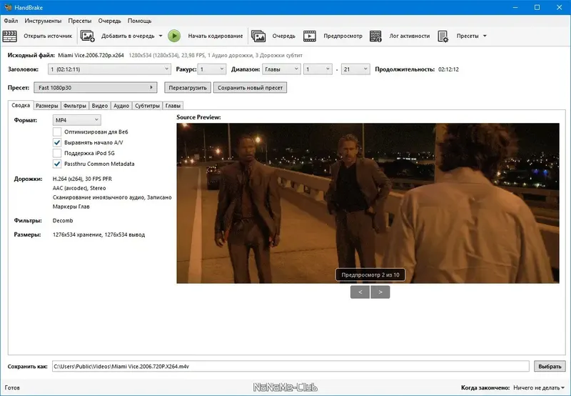 HandBrake — это бесплатный видео конвертер с открытым исходным кодом, который позволяет легко преобразовывать видеофайлы из DVD или других форматов в популярные кодеки MPEG-4 и H.264. Эта программа идеально подходит для тех, кто хочет быстро подготовить видео для просмотра на мобильных устройствах или домашних кинотеатрах. Благодаря простому интерфейсу и широкому набору пресетов, HandBrake делает процесс кодирования видео максимально удобным и доступным для пользователей с разным уровнем опыта.