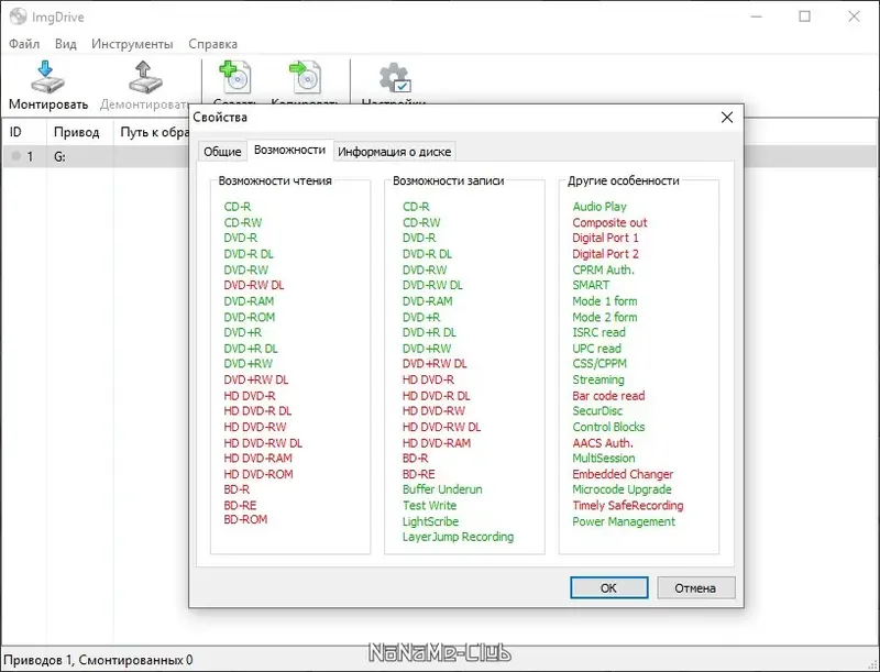- Поддержка различных форматов образов дисков и аудио файлов.