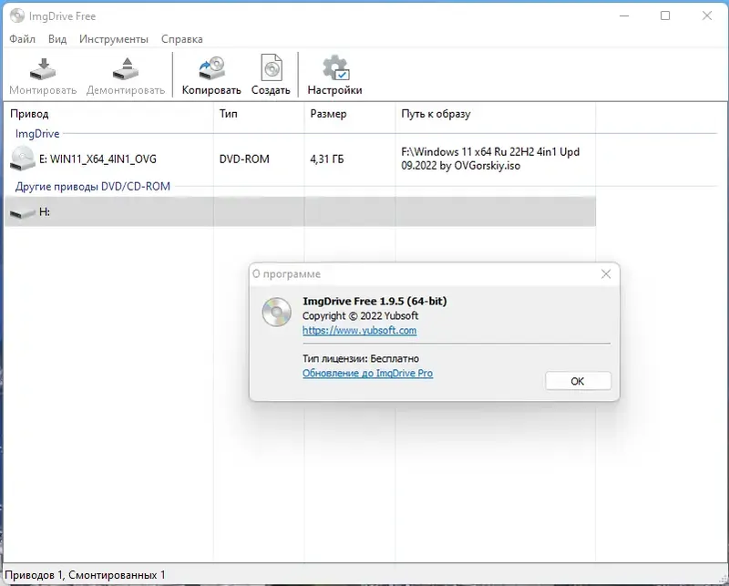 Важно отметить, что ImgDrive совместима с системами Windows от XP до Windows 11, включая 32- и 64-разрядные версии, что делает её универсальным решением для различных конфигураций компьютеров.