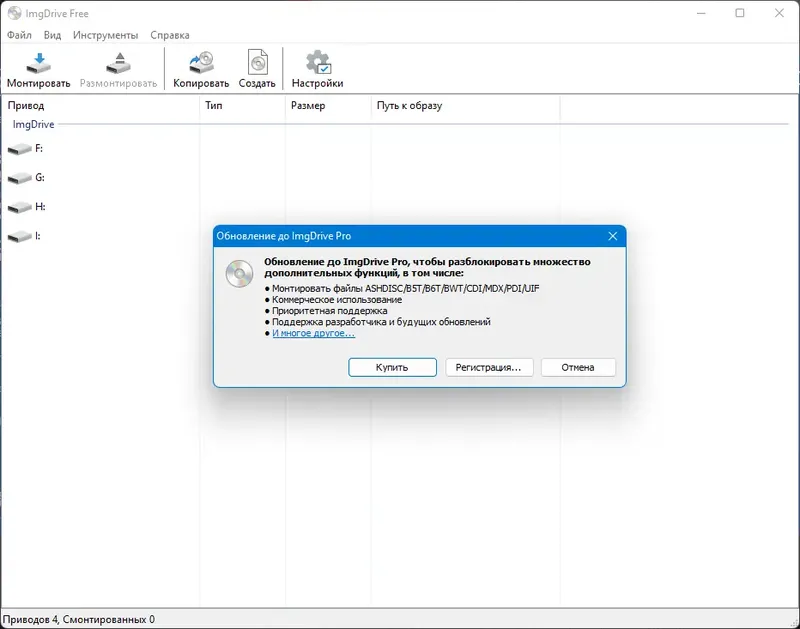 ImgDrive обладает рядом преимуществ, которые делают его популярным среди пользователей, ищущих надежное решение для работы с образами дисков. Его простота и быстрая работа позволяют эффективно использовать программу без лишних сложностей. Однако, как и у любой программы, у ImgDrive есть и некоторые недостатки, связанные с ограниченной функциональностью в бесплатной версии и отсутствием расширенных настроек для продвинутых пользователей.