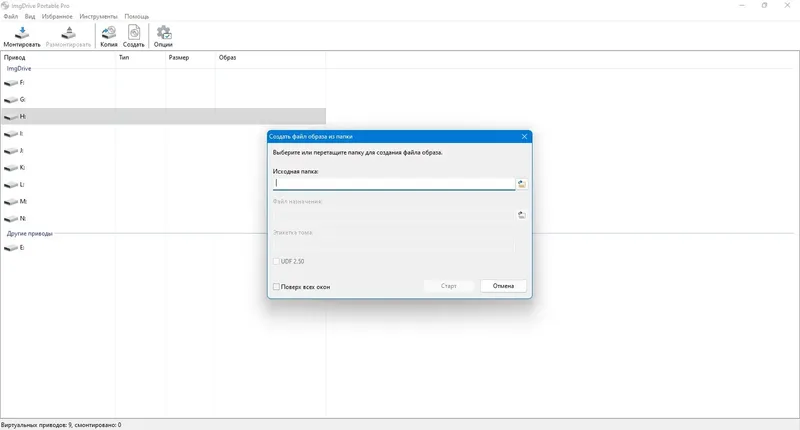 - Работа без перезагрузки системы и поддержка нескольких виртуальных приводов.