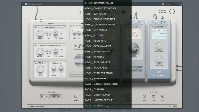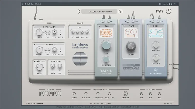 Karanyi Sounds — это мощный и универсальный аудио редактор, предназначенный для создания уникальных звуковых ландшафтов и атмосферных музыкальных произведений. Этот плагин позволяет легко добавлять винтажное и лоу-фай звучание в ваши композиции благодаря простому интерфейсу и богатому набору инструментов. Включая легендарные электрические пианино и синтезаторы, он идеально подходит для музыкантов, продюсеров и звукоинженеров, ищущих качественные и вдохновляющие звуковые решения.