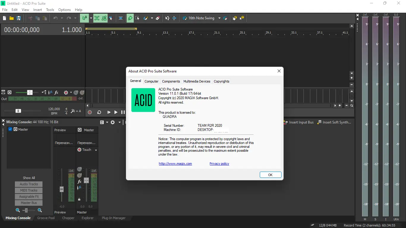 MAGIX ACID Pro — это профессиональный аудиоредактор, предназначенный для создания, редактирования и микширования музыки. Эта мощная DAW сочетает в себе богатый функционал и удобный интерфейс, что делает ее идеальным инструментом для современных артистов, продюсеров и диджеев. Благодаря поддержке множества форматов и встроенным эффектам, программа позволяет реализовать любые творческие идеи, будь то создание ремиксов, аранжировок или полноценных студийных треков.