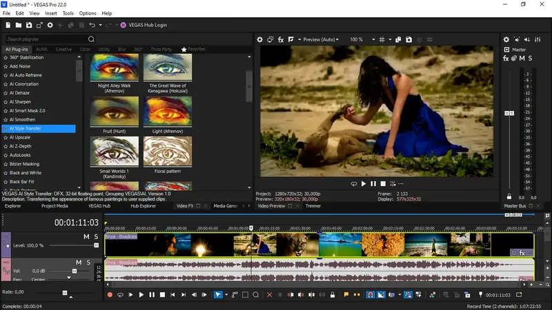 Для начала работы с Vegas Pro необходимо импортировать исходные материалы через меню «Импорт» или перетаскиванием файлов на таймлайн. В дальнейшем можно использовать инструменты для редактирования, такие как обрезка, разделение и наложение эффектов. Рабочий процесс можно автоматизировать с помощью ключевых кадров и сценариев, что позволяет создавать сложные анимации и переходы. После завершения монтажа проект можно экспортировать в различные форматы, оптимизированные для распространения или дальнейшей обработки.