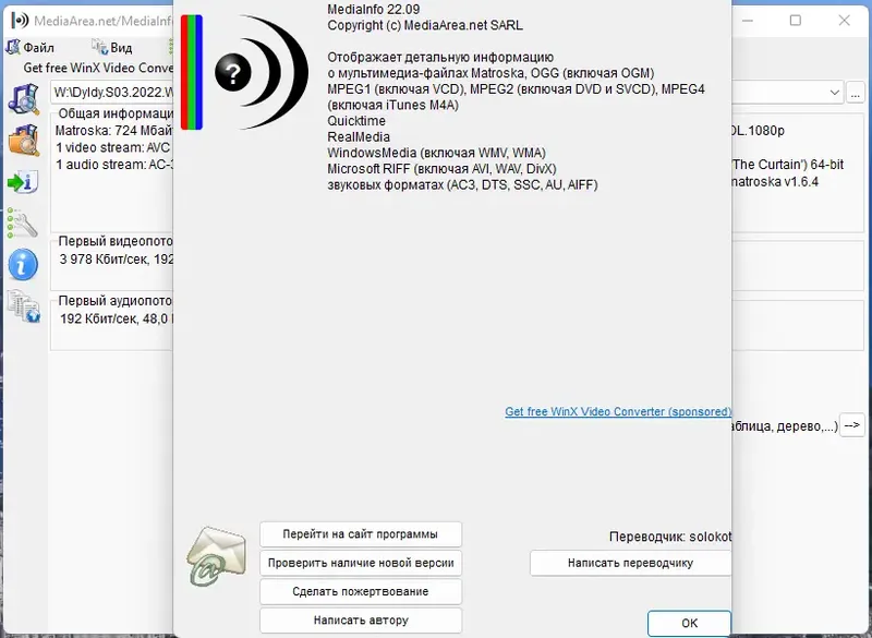 MediaInfo — это бесплатная программа с открытым исходным кодом, которая позволяет определить технические параметры мультимедийных файлов. Она поддерживает работу с различными форматами видео и аудио, такими как MKV, AVI, MP3, AAC и многие другие. Благодаря своему удобному интерфейсу и широким возможностям анализа, MediaInfo используется как специалистами, так и любителями для быстрого получения всей необходимой информации о файле. Она не содержит вредоносного кода, что обеспечивает безопасность при использовании на различных системах, включая Windows 10 и более старых версиях.