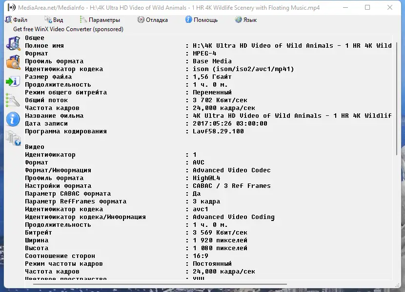 MediaInfo — незаменимый инструмент для тех, кто работает с мультимедийными файлами и нуждается в точной технической информации.