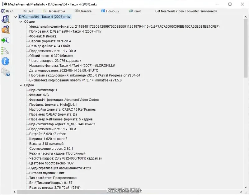 MediaInfo — это универсальный инструмент для анализа мультимедийных файлов, который позволяет узнать всю необходимую техническую информацию о видео и аудио. Благодаря поддержке широкого спектра форматов, таких как MKV, AVI, MP4, MP3, WAV и многие другие, программа подходит для разных задач, связанных с обработкой и каталогизацией мультимедиа. Интуитивный интерфейс и возможность экспорта данных в различные форматы делают ее незаменимым помощником для профессионалов и домашних пользователей. MediaInfo также предлагает портативную версию, которую можно скачать на русском языке и использовать без установки, что особенно удобно для быстрого анализа на любом компьютере.