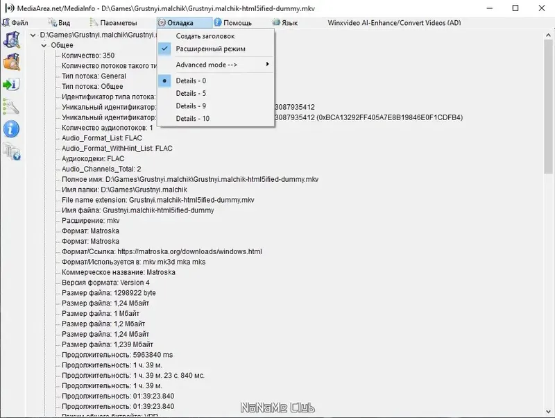 MediaInfo — это бесплатная программа, предназначенная для получения технической информации о видео- и аудиофайлах. Она поддерживает широкий спектр форматов и позволяет быстро определить параметры файлов, такие как кодек, разрешение, длительность и многое другое. Программа идеально подходит для тех, кто работает с мультимедийным содержимым, требует анализа и оптимизации видео и аудио для различных задач, а также ищет удобный инструмент для быстрого получения данных без необходимости сложных настроек.