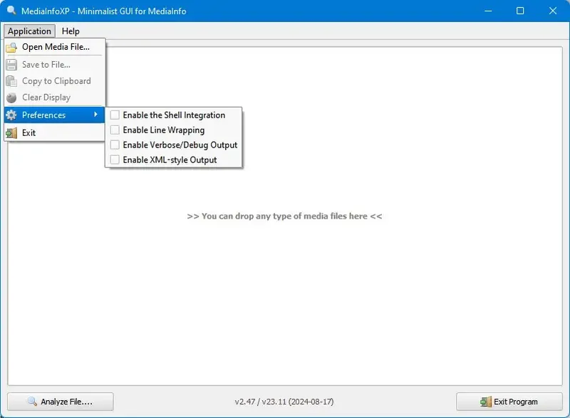 MediaInfoXP представляет собой легкое и функциональное решение для получения технических характеристик мультимедийных файлов. Созданная на базе проекта с открытым исходным кодом, эта программа позволяет быстро просматривать сведения о формате, кодеке, битрейте, разрешении и других параметрах видео и аудио. Ее простота и универсальность делают MediaInfoXP популярным инструментом среди видеомонтажеров, аудиоинженеров и энтузиастов мультимедиа. Благодаря своей портативной природе, программа не требует установки и может запускаться с любого носителя, а также легко интегрироваться в проводник Windows для быстрого доступа.