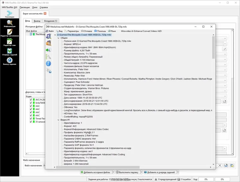 - Поддержка мультидорожечных файлов MKV с возможностью добавления и удаления дорожек.