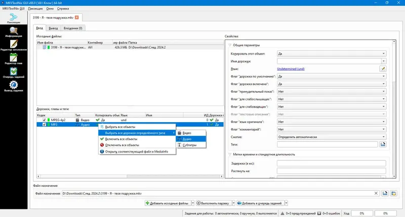 Как пользоваться MKVToolNix