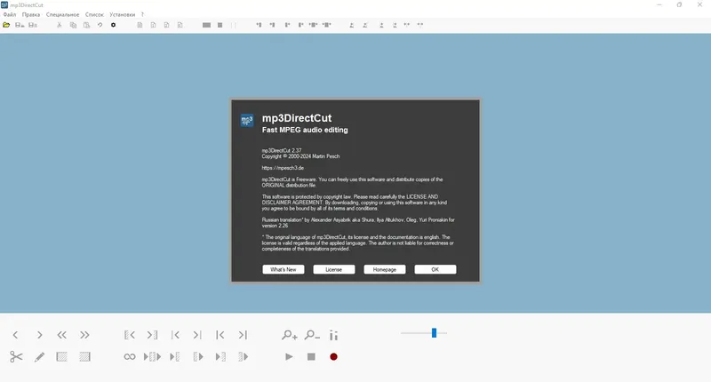 mp3DirectCut — это легкий и эффективный редактор аудио, предназначенный для быстрого редактирования mp3-файлов. Он позволяет выполнять такие операции, как вырезание нежелательных участков, изменение громкости, объединение файлов и редактирование тегов ID3. Программа полностью поддерживает работу с Layer 2, а также обеспечивает возможность записи аудио непосредственно на диск. Ее можно бесплатно скачать с официального сайта, что делает ее доступной для широкого круга пользователей, желающих работать с аудиофайлами без сложных настроек и наворотов.