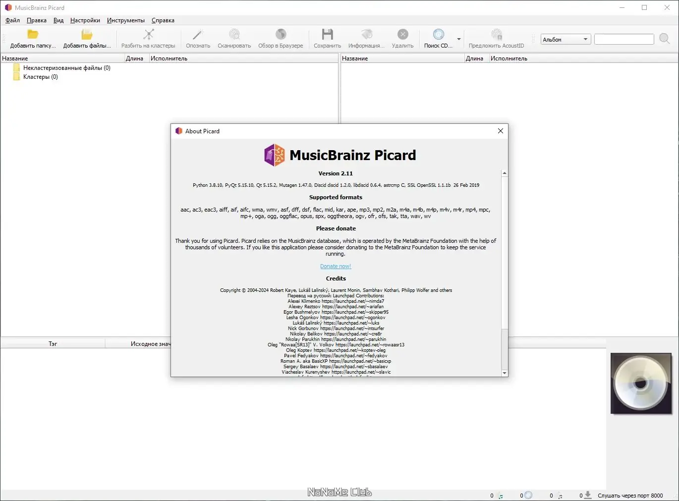 MusicBrainz Picard — это удобная и простая программа для редактирования тегов аудиофайлов, которая позволяет быстро и точно организовать музыкальную коллекцию. Поддерживая широкий спектр форматов, она помогает автоматически находить и добавлять информацию о композициях, что значительно экономит время и упрощает управление музыкой.