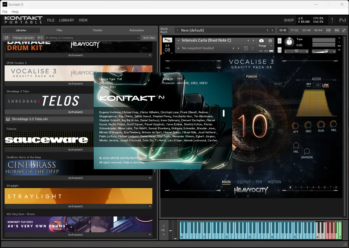 Native Instruments Kontakt — это один из ведущих редакторов для работы с аудиоматериалами, который широко используется в сфере мультимедиа, звукозаписи и музыкального продакшена. Он позволяет загружать и обрабатывать сэмплы музыкальных инструментов, вокальных треков и звуковых эффектов, а также создавать собственные виртуальные инструменты. В новой версии Kontakt 8 реализованы инновационные функции, такие как таблично-волновой движок и расширенные возможности генерации мелодий, что значительно расширяет творческий потенциал пользователей. Это универсальное решение для профессионалов, стремящихся к высокой точности и оригинальности в создании звука, интегрируемое с популярными платформами и программами типа Traktor, Maschine или Komplete.