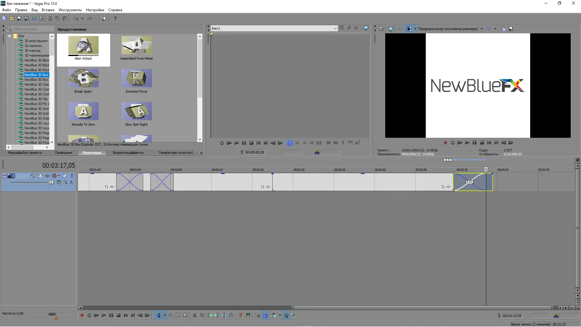 Пакет плагинов от New Blue включает широкий набор инструментов для улучшения визуальной составляющей видео. В него входят эффекты для создания красочных переходов, динамических разрушений, художественных наложений и специальных эффектов. Благодаря удобному интерфейсу и богатому функционалу, эти плагины позволяют реализовать даже самые смелые идеи по обработке видеоматериалов, делая их более яркими и запоминающимися.