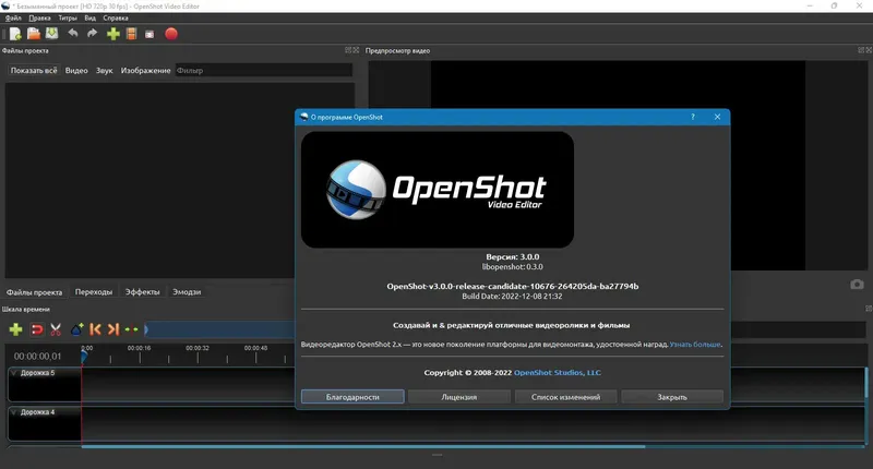 OpenShot Video Editor — мощный и удобный видеоредактор, который подойдет как новичкам, так и профессионалам. Эта программа позволяет легко создавать и редактировать видеоролики, объединяя, обрезая и добавляя различные элементы. Благодаря простому интерфейсу и широкому набору функций, OpenShot Video Editor обеспечивает качественную обработку видео на русском языке и доступна для бесплатного скачивания.