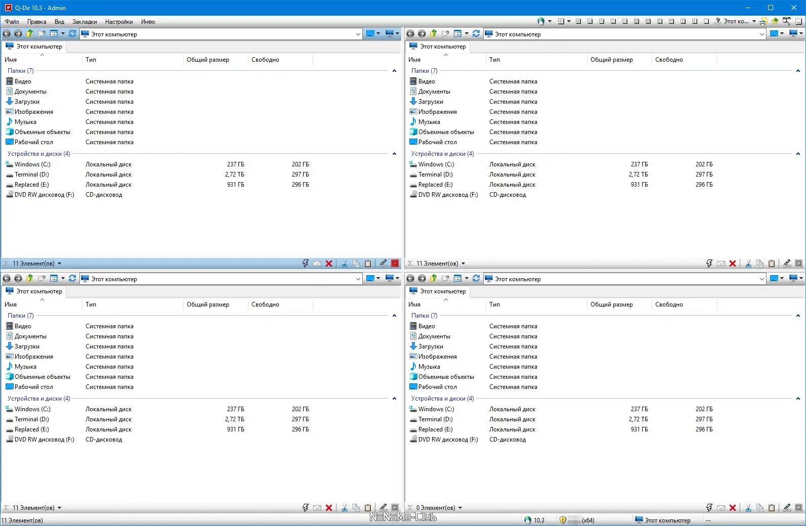 Q-Dir — это мощный файловый менеджер с уникальным четырехпанельным интерфейсом, который значительно облегчает работу с файлами и папками. Программа поддерживает работу с любого съемного устройства, обладает многоязычным интерфейсом и широкими возможностями по организации доступа к часто используемым папкам. Благодаря своим функциям, Q-Dir подходит как для продвинутых пользователей, так и для тех, кто ищет удобное решение для управления файлами на компьютере или внешних носителях.