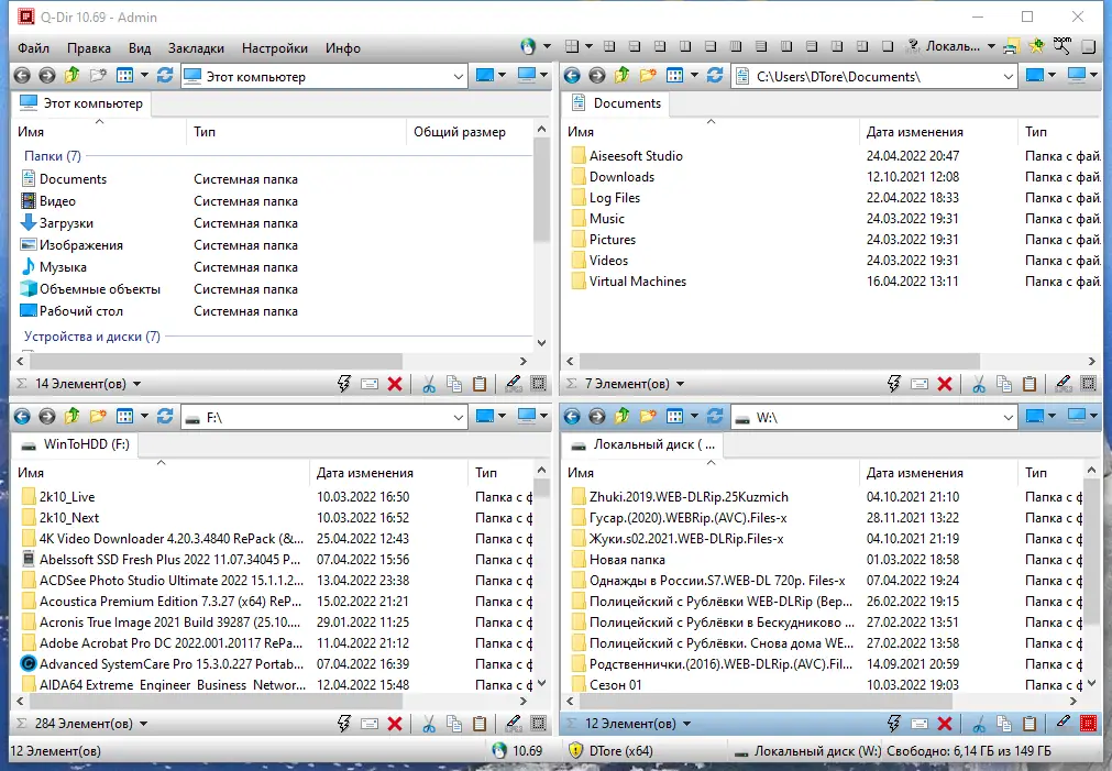 Q-Dir — это многофункциональный файловый менеджер, отличающийся оригинальным четырехпанельным интерфейсом и широкими возможностями по работе с файлами и папками. Он подходит для быстрого доступа к различным дискам, сетевым ресурсам и съемным носителям. Благодаря поддержке множества функций, программа значительно облегчает управление файлами и повышает эффективность работы с данными на компьютере.