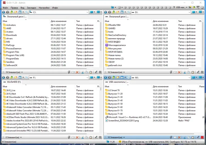 Q-Dir — это мощный и удобный файловый менеджер с уникальным четырехпанельным интерфейсом, который значительно ускоряет работу с файлами и папками. Он поддерживает работу с любых съемных устройств, таких как USB-накопители, карты памяти и сетевые ресурсы, что делает его универсальным инструментом для пользователей. Благодаря многоязычному интерфейсу и широким возможностям по настройке, программа подходит как для профессионалов, так и для обычных пользователей, которым важно быстро и эффективно управлять файлами.