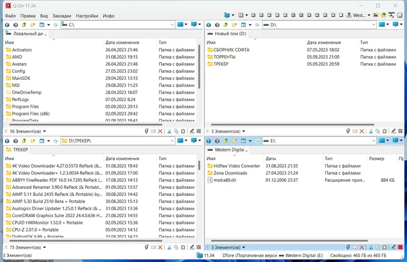 Q-Dir — это многофункциональный файловый менеджер с уникальным четырехпанельным интерфейсом, который значительно облегчает работу с файлами и папками. Он поддерживает работу с различными носителями, включая съемные устройства, сетевые ресурсы и FTP-серверы. Благодаря широкому набору функций, программа обеспечивает быстрый доступ к часто используемым папкам, удобную фильтрацию и просмотр файлов, а также возможность экспорта данных в различные форматы. Это универсальный инструмент для тех, кто ищет эффективное решение для организации и управления файлами на компьютере.