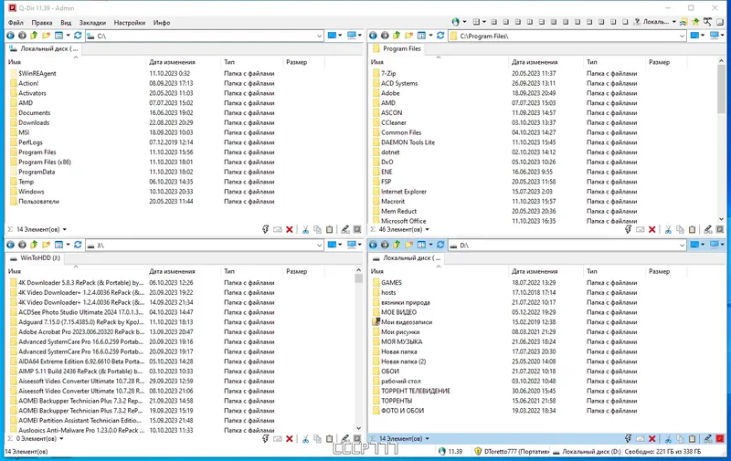 Q-Dir — это универсальный файловый менеджер с уникальным четырехпанельным интерфейсом, который значительно упрощает работу с файлами и папками. Программа подходит для быстрого доступа к различным хранилищам, поддерживает работу с съемными носителями и сетевыми ресурсами, а также обладает множеством функций для эффективного управления файлами. Благодаря многоязычному интерфейсу и расширенным возможностям, Q-Dir становится незаменимым инструментом для пользователей, желающих повысить продуктивность и комфорт работы.