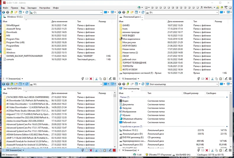 Q-Dir — это современный файловый менеджер, предоставляющий пользователю возможность работать с файлами через четыре панели одновременно. Такой подход облегчает копирование, перемещение и сравнение данных между папками, а также позволяет быстро находить нужные файлы. Помимо стандартных функций, программа поддерживает работу с архивами ZIP, сетевыми папками, FTP-серверами и системными каталогами, что расширяет возможности управления файлами в различных сценариях. Многоязычный интерфейс облегчает использование программы пользователям по всему миру, а возможность экспорта данных в популярные форматы делает работу с файлами еще более удобной.