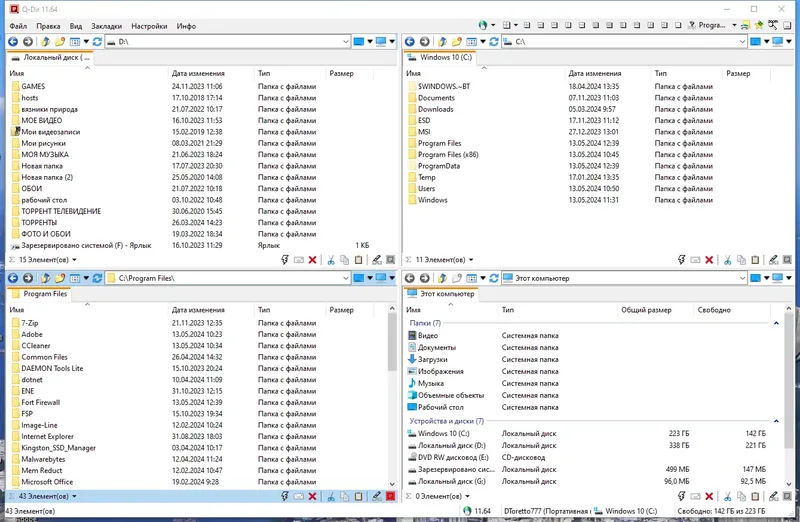 Q-Dir — это многофункциональный файловый менеджер с уникальным четырехпанельным интерфейсом, предназначенный для облегчения работы с файлами и папками. Программа отличается высокой скоростью, гибкостью настроек и широкими возможностями по управлению файлами на различных носителях, включая съемные устройства и сетевые ресурсы. Благодаря интуитивному интерфейсу и поддержке множества форматов, Q-Dir идеально подходит для пользователей, ищущих эффективное решение для организации и обработки файловых данных.