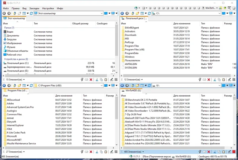 Q-Dir — это многофункциональный файловый менеджер с уникальным интерфейсом, позволяющим управлять файлами и папками максимально эффективно. Он обладает широкими возможностями для работы с различными типами устройств и сетевых ресурсов, обеспечивая быстрый доступ к необходимым файлам. Программа подходит как для профессиональных пользователей, так и для тех, кто ценит удобство и скорость работы с файлами на компьютере.