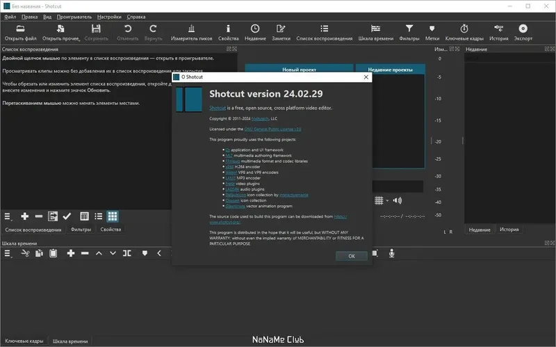 Shotcut — это мощное и универсальное кроссплатформенное приложение с открытым исходным кодом, предназначенное для профессионального и любительского монтажа видео. Благодаря богатому набору функций и удобному интерфейсу, программа позволяет быстро и легко редактировать видеоролики, добавлять эффекты, фильтры и преобразовывать файлы в различные форматы. С помощью Shotcut можно создавать качественные видеопроекты, работать с видео в разрешении 4K UHD и осуществлять перекодировку без потерь. Это отличный выбор для тех, кто ищет бесплатное решение для монтажа на русском языке и хочет скачать программу без затрат.