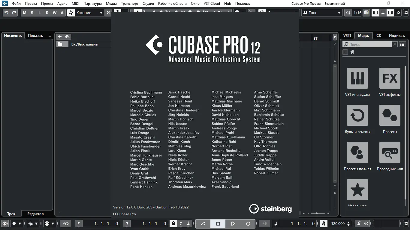 Steinberg Cubase — это профессиональный мультимедийный редактор, предназначенный для создания и обработки аудиоматериалов. Эта программа идеально подходит как для начинающих музыкантов, так и для опытных продюсеров, благодаря богатому набору функций, высокой точности и качеству звука. Cubase позволяет реализовать любые идеи в области звукорежиссуры, композиций и обработки аудио, обеспечивая эффективный рабочий процесс и стабильную работу на различных устройствах.