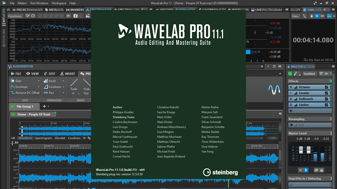 WaveLab — это профессиональный аудиоредактор и мастеринг-студия, которая уже более 25 лет занимает лидирующие позиции среди программ для обработки звука. Этот универсальный инструмент предназначен для высококачественного монтажа, восстановления аудиофайлов и редактирования звукозаписей высокого разрешения. Благодаря богатому функционалу и высокой точности работы, WaveLab широко используется как любителями, так и профессионалами в области звукозаписи и музыкального производства. Программа совместима с 64-битными операционными системами Windows и поддерживает работу с MIDI-контроллерами Steinberg, что делает её незаменимым помощником при создании и обработке аудио проектов.