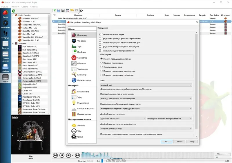 Strawberry — это современный музыкальный плеер и органайзер, предназначенный для любителей и коллекционеров аудиофайлов. Он позволяет удобно управлять музыкальной библиотекой, воспроизводить любимые композиции и слушать радиостанции в различных форматах. Благодаря расширенной функциональности и поддержке потокового вещания программа стала популярным решением для тех, кто ценит качество звука и удобство использования.