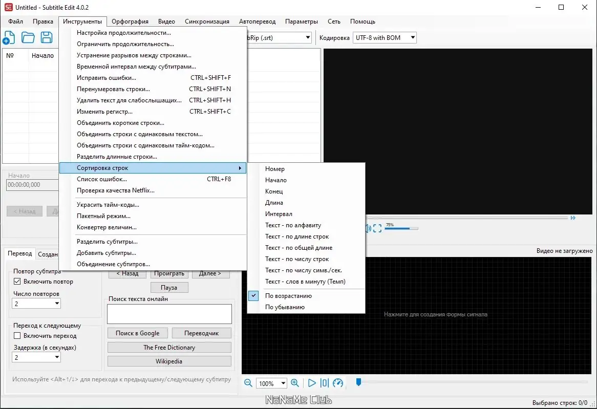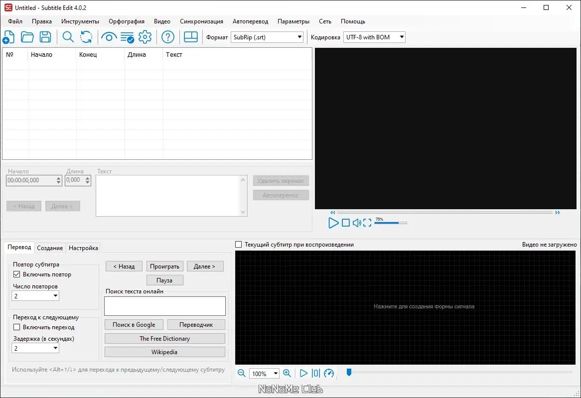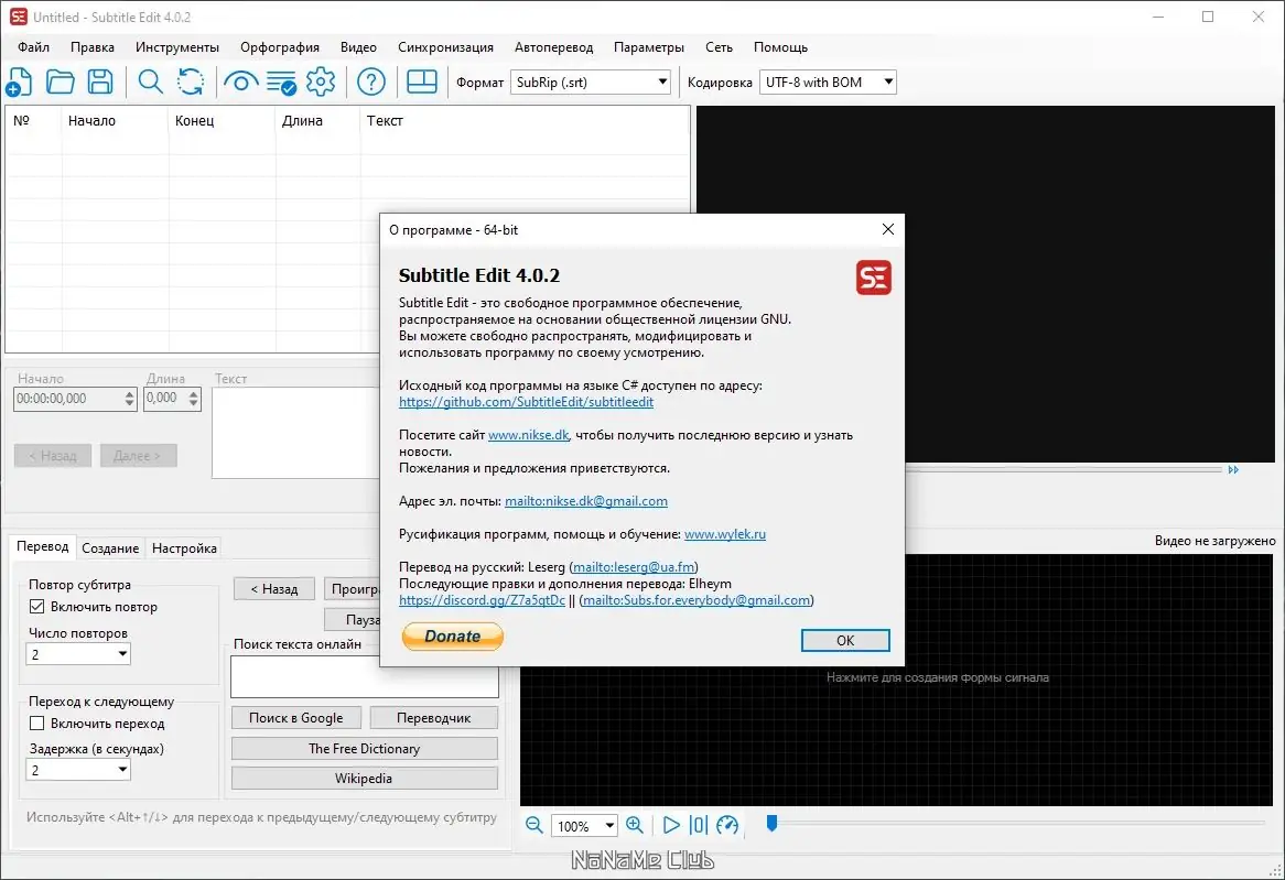 Subtitle Edit — это профессиональный редактор субтитров, который отлично подходит как для начинающих, так и для опытных пользователей. Он позволяет импортировать субтитры из различных источников, в том числе через OCR, что особенно полезно при работе с устаревшими или сканированными файлами. Программа обеспечивает синхронизацию субтитров с видео, что помогает добиться точного соответствия текста и изображения. Кроме того, она поддерживает работу с популярными форматами видео и аудио, а также предлагает инструменты для автоматического перевода и работы с языками, включая русский, английский и другие. Видео можно редактировать прямо в программе, а также экспортировать в нужный формат для дальнейшего использования или публикации.