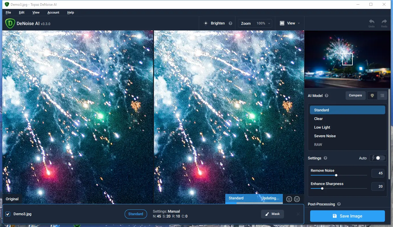 Topaz DeNoise AI — это современный инструмент для профессиональной и любительской обработки изображений, который позволяет эффективно устранить шум и восстановить детали в фотографиях. Благодаря передовым алгоритмам искусственного интеллекта, программа обеспечивает высокое качество результата при работе с изображениями, снятыми при низком освещении или с высоким ISO. Это идеальное решение для тех, кто ценит четкость и естественность фотографий без необходимости сложных настроек и длительных процессов обработки.