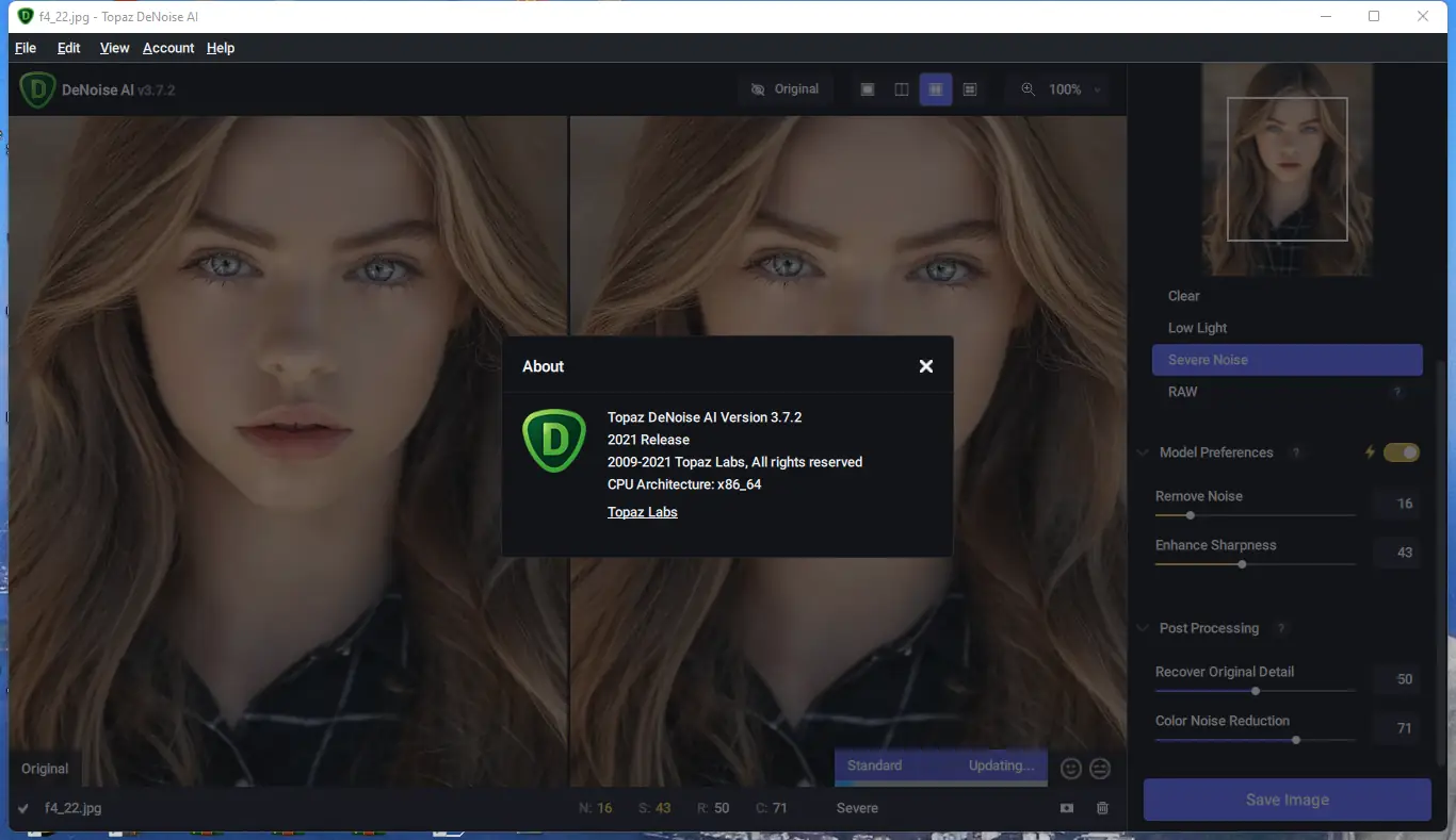 Topaz DeNoise — мощный редактор аудио и мультимедийных файлов, предназначенный для эффективного подавления шума и восстановления четкости звука и изображений. Эта программа использует передовые технологии искусственного интеллекта, что позволяет добиться высокого качества обработки даже при съемке в условиях плохого освещения или с высоким ISO. Идеально подходит для профессиональных фотографов, видеомонтажеров и любителей, желающих улучшить качество своих мультимедийных материалов без потери деталей.
