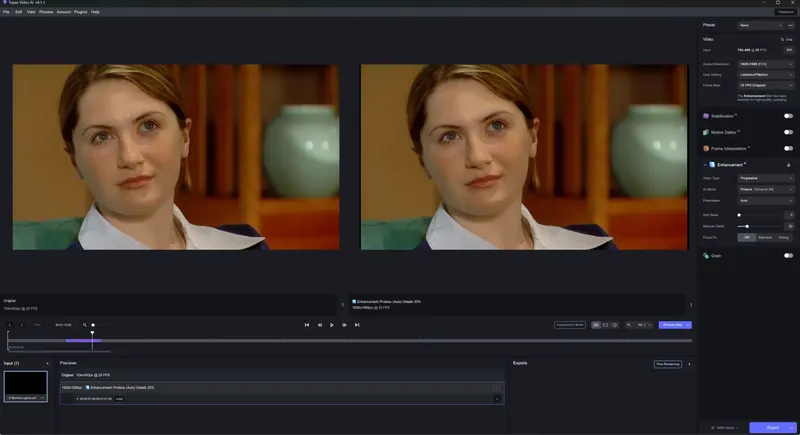 Topaz Video AI — это современное программное обеспечение для улучшения и увеличения видео с использованием технологий искусственного интеллекта. Оно позволяет повысить разрешение видеоматериалов до 8K, сохраняя при этом высокую детализацию и плавность движения. Благодаря уникальным алгоритмам, программа подходит для восстановления старых видеозаписей, повышения качества домашних фильмов и создания профессиональных видеопроектов.
