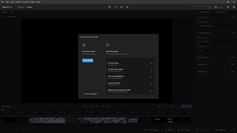 Для начала работы с программой достаточно загрузить нужное видео, выбрать желаемый тип улучшения и задать параметры повышения разрешения. В интерфейсе доступны вкладки с предустановками, которые позволяют быстро настроить качество и стиль обработки. После выбора настроек достаточно нажать кнопку рендеринга, и программа автоматически создаст улучшенную версию видео, используя алгоритмы искусственного интеллекта. Встроенный видеоплеер позволяет просматривать предварительные результаты и сравнивать их с исходным материалом, что значительно упрощает контроль качества.