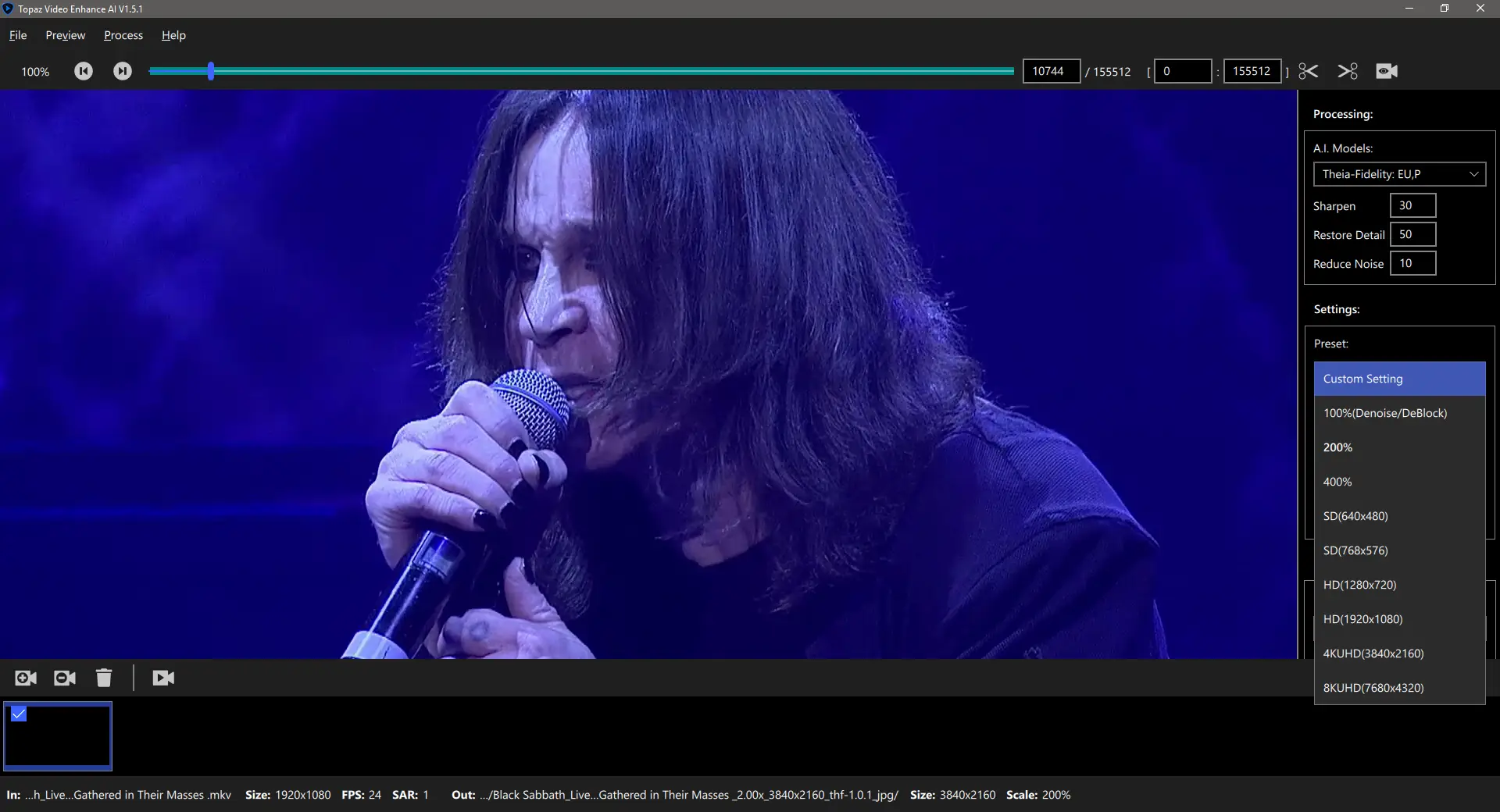 - Масштабирование видео до 8K с сохранением деталей и четкости