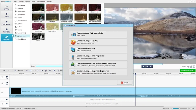 ВидеоМОНТАЖ — это современный и доступный видеоредактор, который отлично подойдет как для начинающих, так и для опытных пользователей. Он позволяет быстро создавать эффектные видеоролики и фильмы прямо в домашних условиях, используя широкий набор инструментов и эффектов. Благодаря простоте интерфейса и минимальному времени освоения, программа идеально подходит для тех, кто хочет скачать бесплатно качественный редактор для редактирования видео и создания креативных проектов.